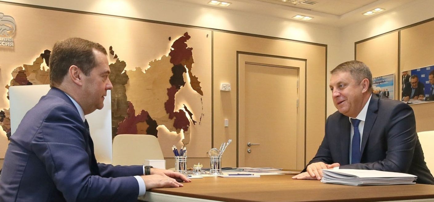 11 сентября состоялась встреча Председателя Правительства Российской Федерации Дмитрия Медведева и Губернатора Брянской области Александра Богомаза. Обсуждались вопросы социально-экономическогоразвития региона. Кроме того, глава региона доложил о готовности жилищно-коммунального хозяйства Брянской области к отопительному сезону 2018–2019 годов.
