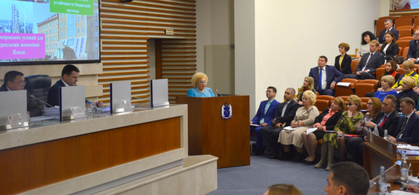В своём выступлении замгубернатора рассказала об основных параметрах бюджета на предстоящую трёхлетку и отметила, что в основе формирования главного финансового документа ЯНАО лежат указы Президента РФ, основные направления бюджетной и налоговой политики и прогноз социально-экономического развития региона.