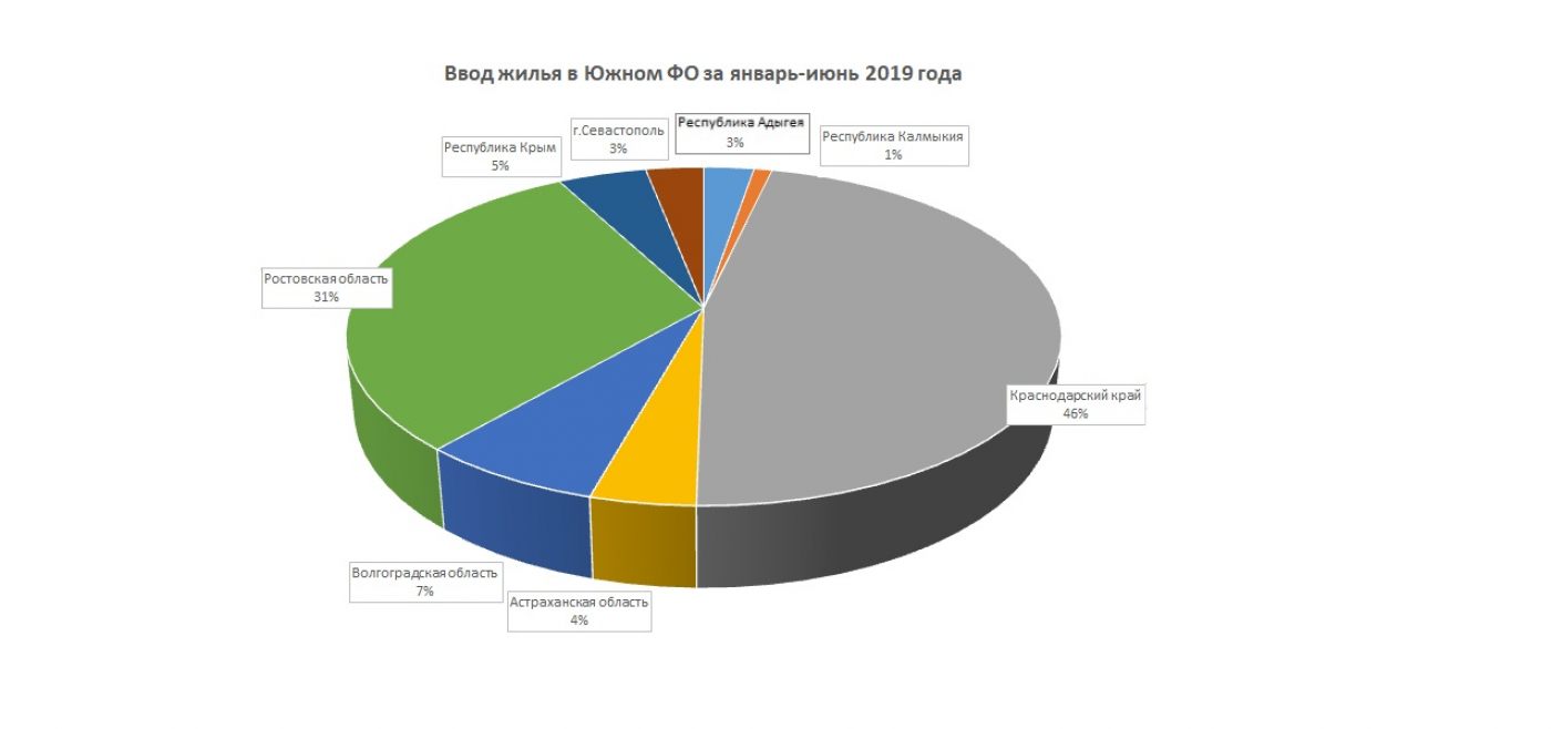 В Краснодарском крае и Ростовской области за первое полугодие в общей сложности введено почти 3 миллиона квадратных метров жилья, что составляет 77% от общего объема ввода жилой площади в целом по ЮФО.