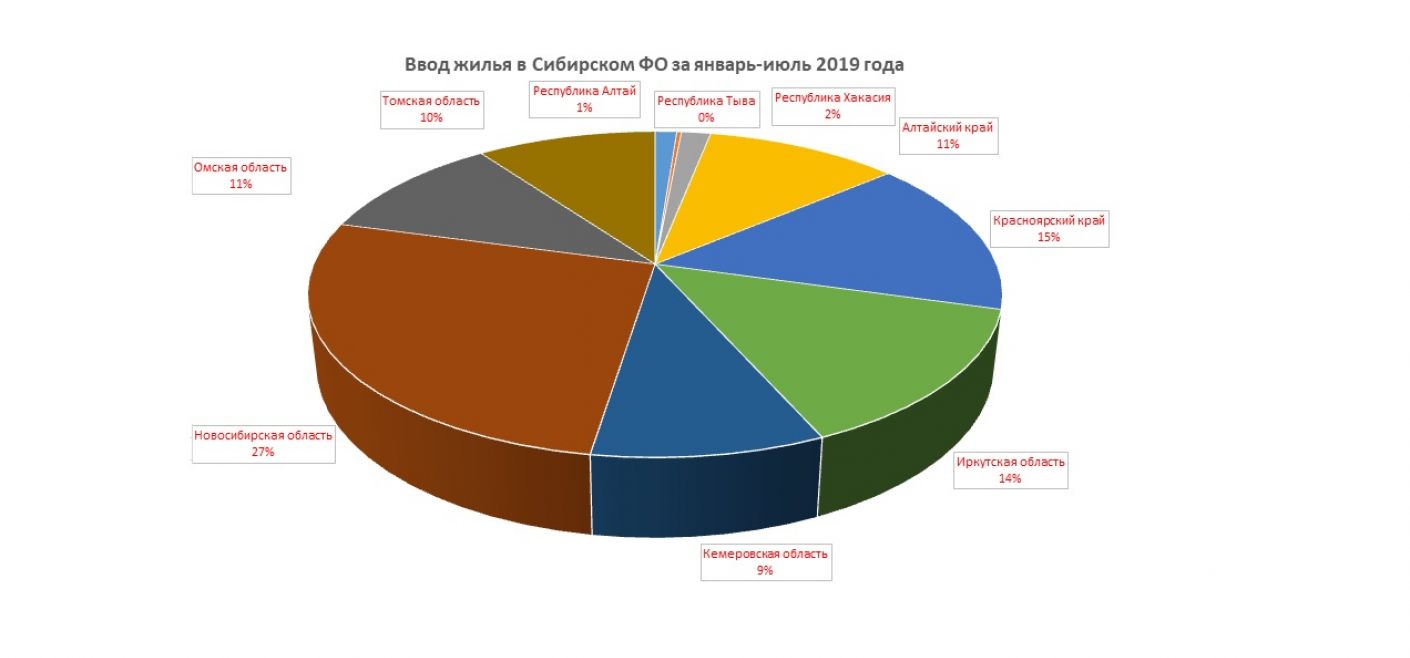 Один из самых главных показателей, ввод жилья на душу населения, по итогам семи месяцев 2019 года в Новосибирской области составил 0,29 кв. метров, Республике Алтай - 0,20 кв. метров на человека. В этих регионах достигнутый результат выше среднего показателя в СФО.