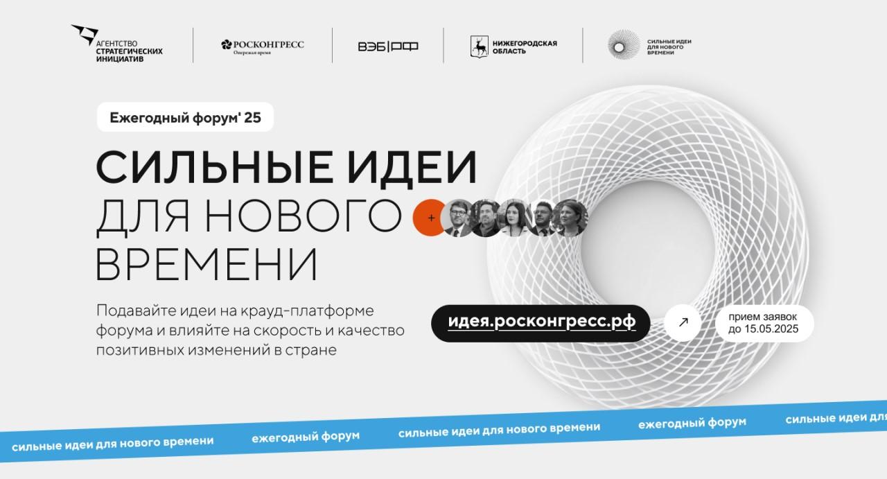 Автономная некоммерческая организация «Агентство стратегических инициатив по продвижению новых проектов» (далее – Агентство стратегических инициатив) совместно с Фондом «Росконгресс» организует ежегодный форум «Сильные идеи для нового времени» (далее – Форум) с целью отбора и реализации сильных идей, которые внесут значимый вклад в развитие страны, укрепление суверенитета и достижение стратегических целей развития России.