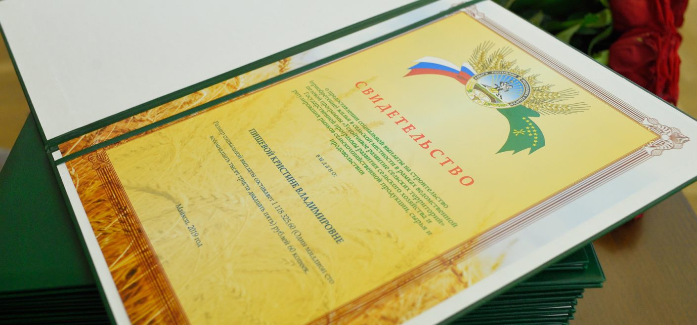 Сегодня в Госфилармонии РА состоялась церемония вручения свидетельств на приобретение жилья в сельской местности молодым семьям и молодым специалистам. Сертификаты вручил Глава Адыгеи Мурат Кумпилов.