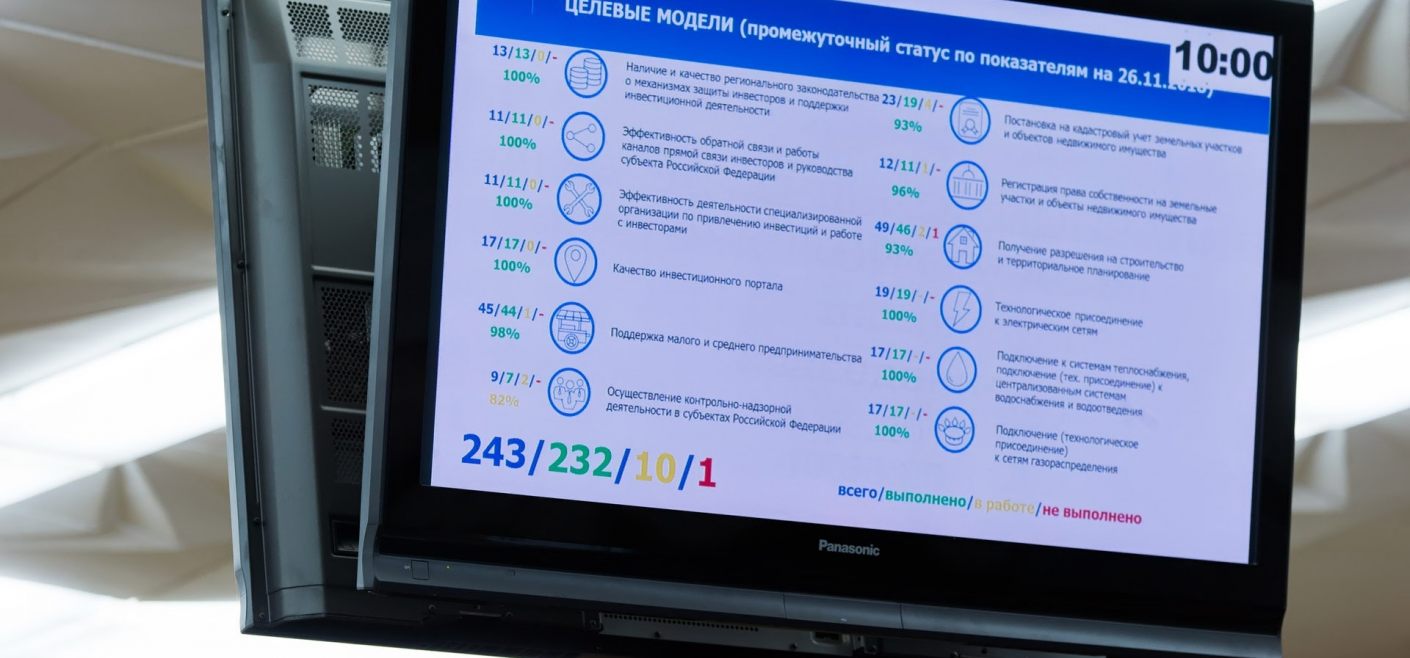 Разговор начался с обсуждения хода реализации «дорожных карт» внедрения целевых моделей улучшения инвестиционного климата. По сообщению министра экономического развития области Ильи Веселова, в настоящее время средний процент их выполнения составляет в регионе 97 процентов. Из 12 целевых моделей показатели полностью достигнуты по семи.