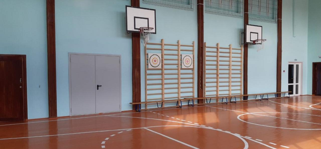 Помещение окрасили, установили баскетболные фермы, заградительную сетку для окон и вентиляции, отремонтировали пол, уложили специальное покрытие.